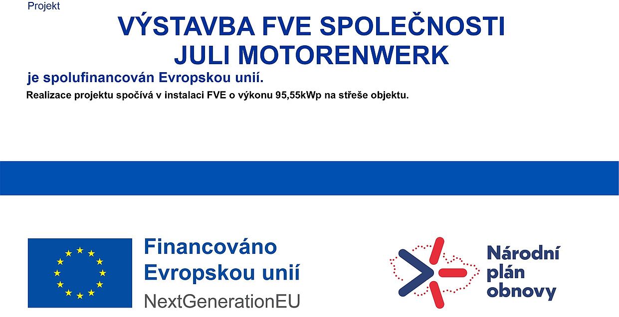 V JULI Motorenwerk jsme realizovali řadu projektů zaměřených na podporu ze strany Evropské unie a Ministerstva průmyslu České republiky. S pomocí těchto investic zvyšujeme užitnou hodnotu elektrických točivých strojů a konkurenceschopnost podniku na světovém trhu s elektrickými stroji pro manipulační techniku.